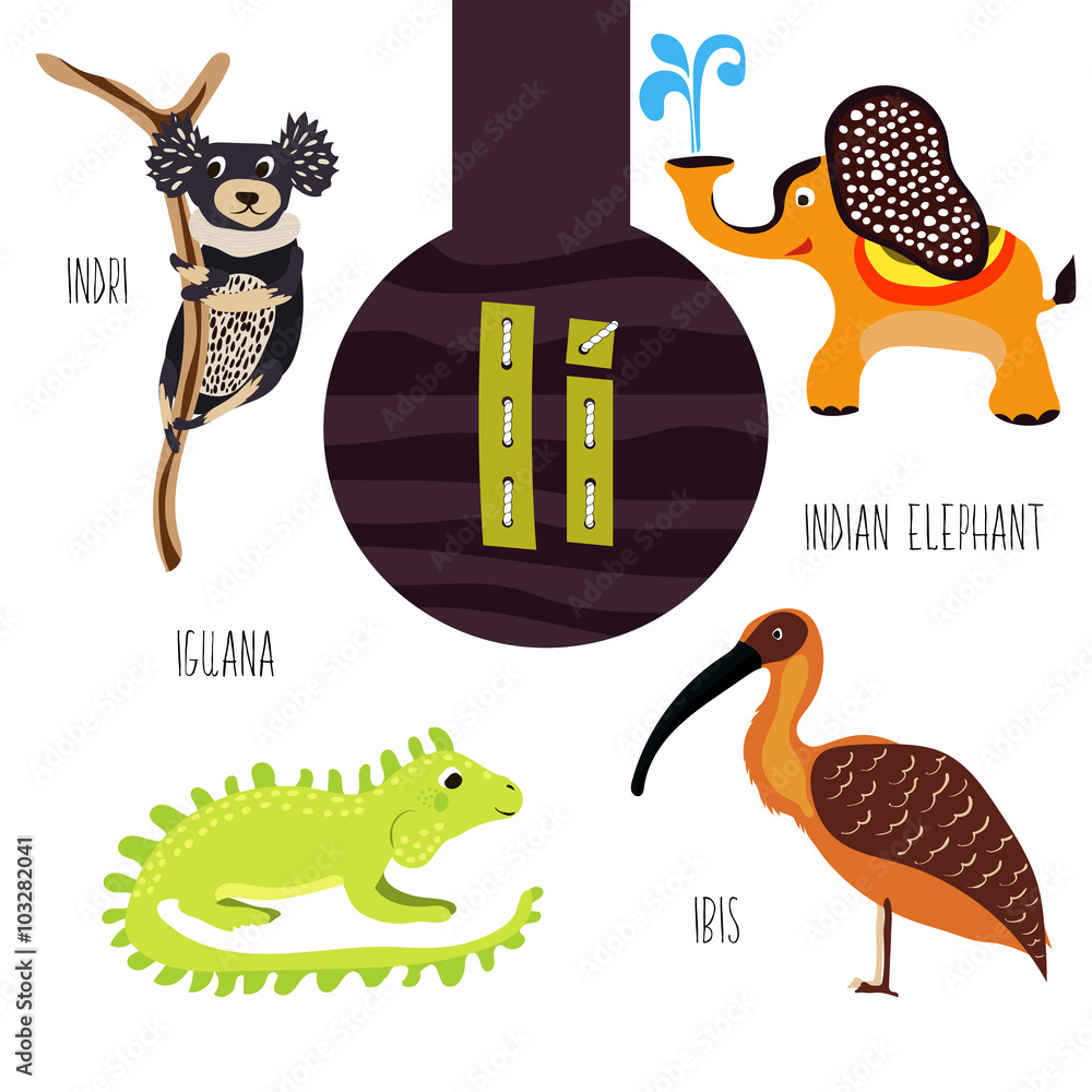Fun Animal Letters Of The Alphabet For The Development And Learning Of Preschool Children Set Of Cute Forest Domestic And Marine Animals With The Letter I Vector Stock Vector Adobe Stock